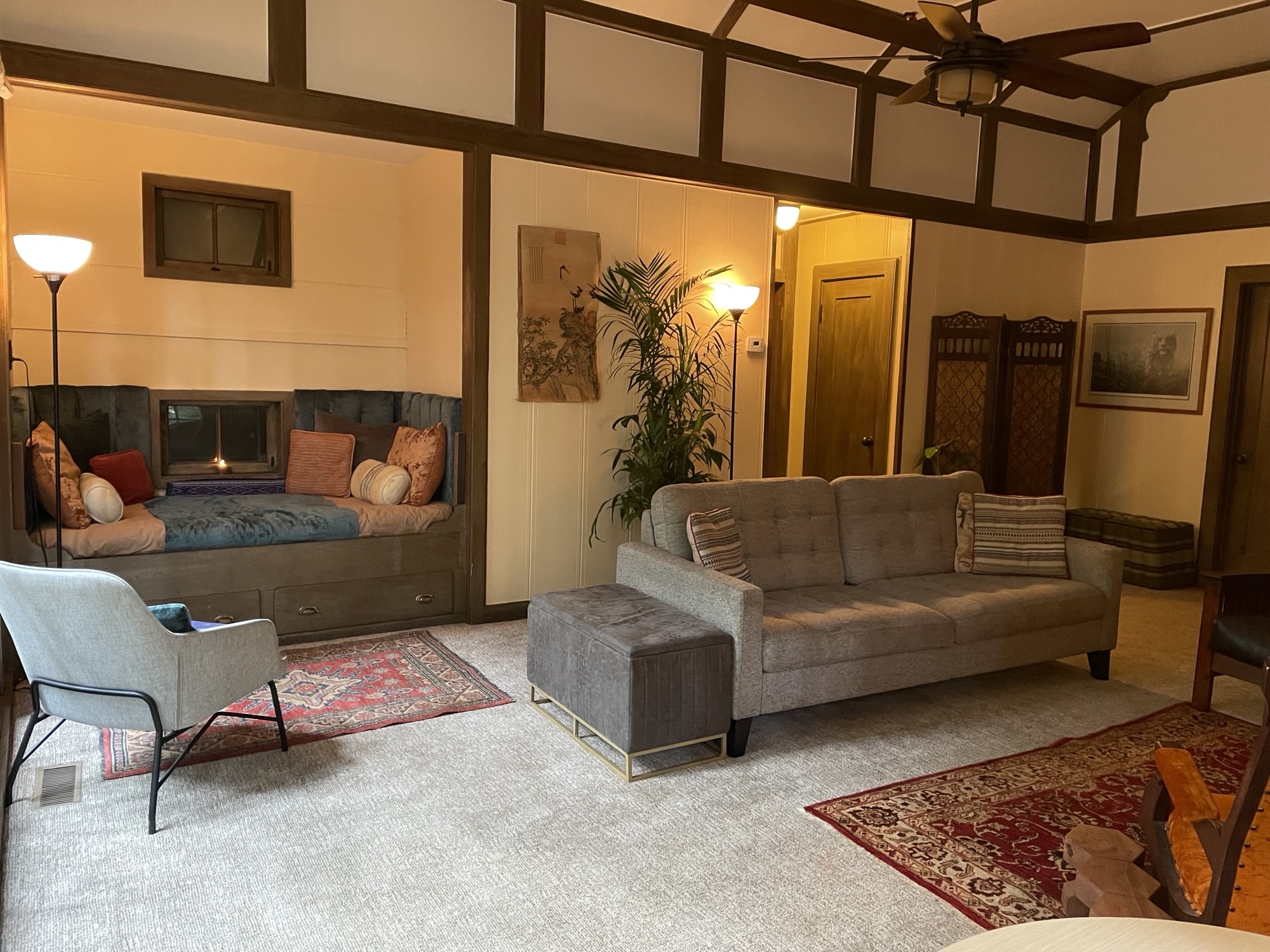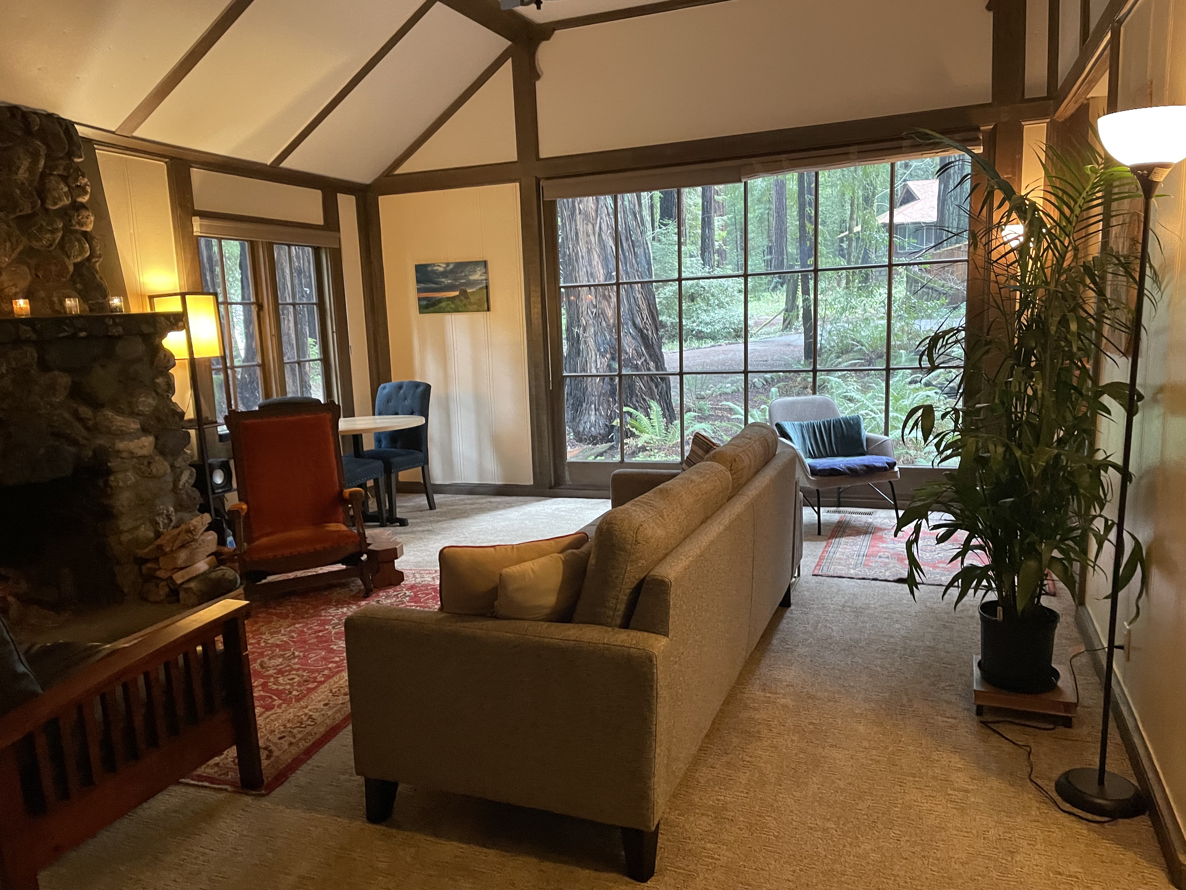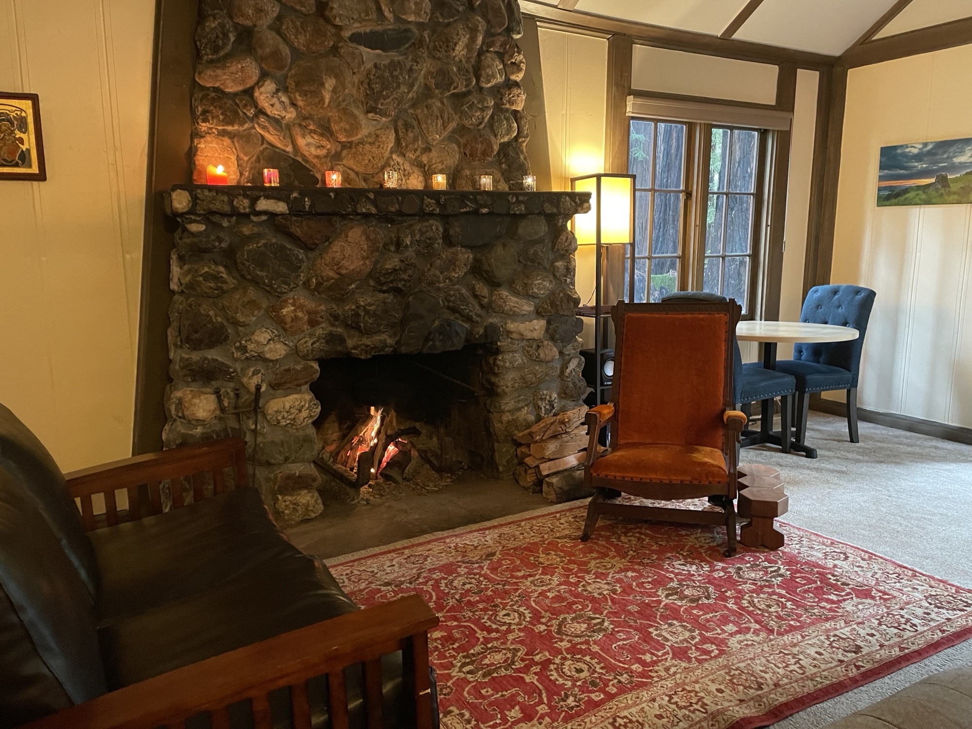1920s Log Cabin Living Room Fireplace Alt